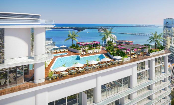 Il gioiello della corona dei servizi di Brickell Flatiron è il 64 ° piano del Rooftop Sky Club. Lo Sky Club ospita la Brickell Sky Spa, un centro fitness sul tetto e una piscina panoramica all'ultimo piano con vista panoramica a 360 gradi su Miami e Biscayne Bay.